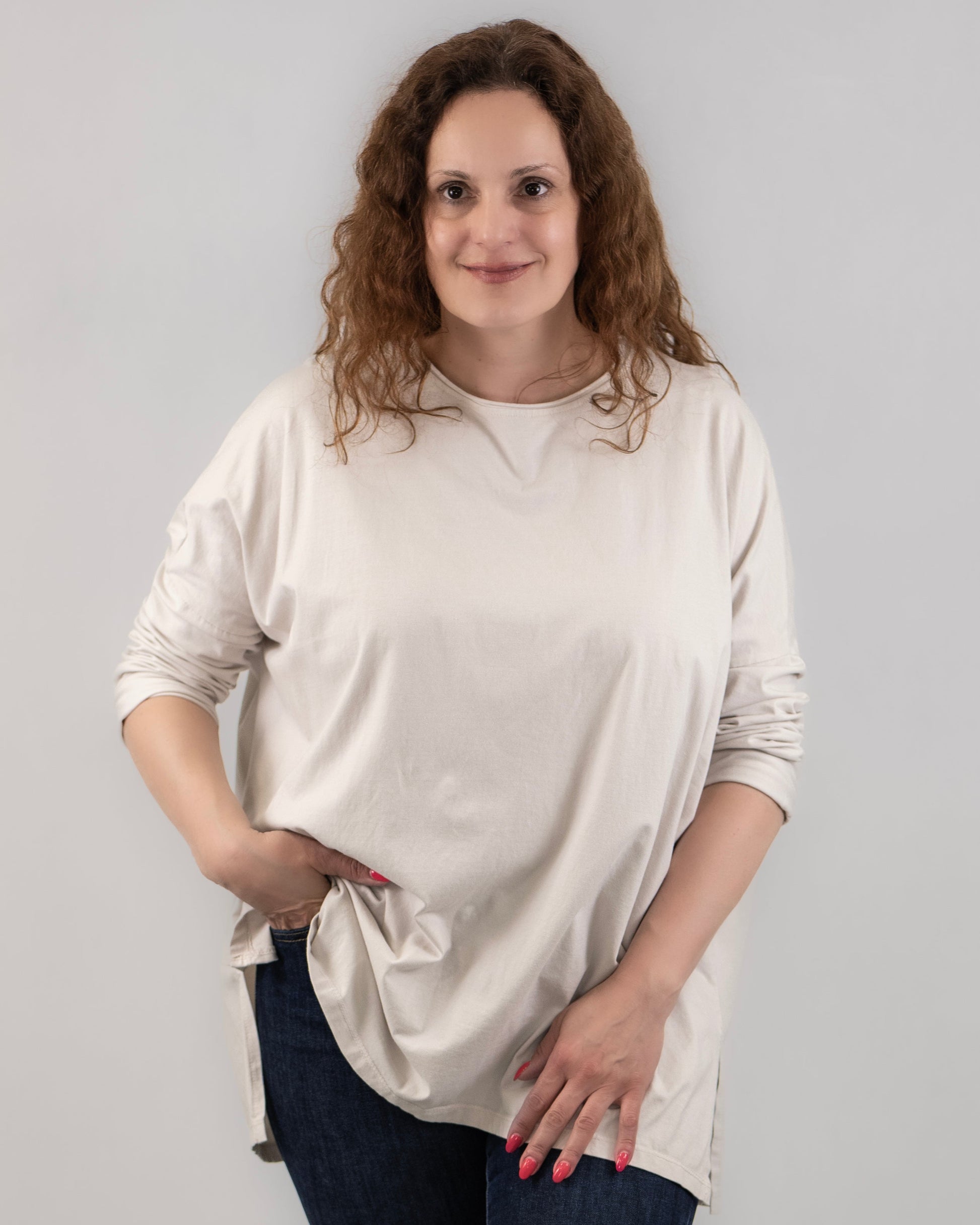SUN bész pamut tunika hosszú ujjú, nagy méret, nagyon kényelmes rugalmas anyagú.