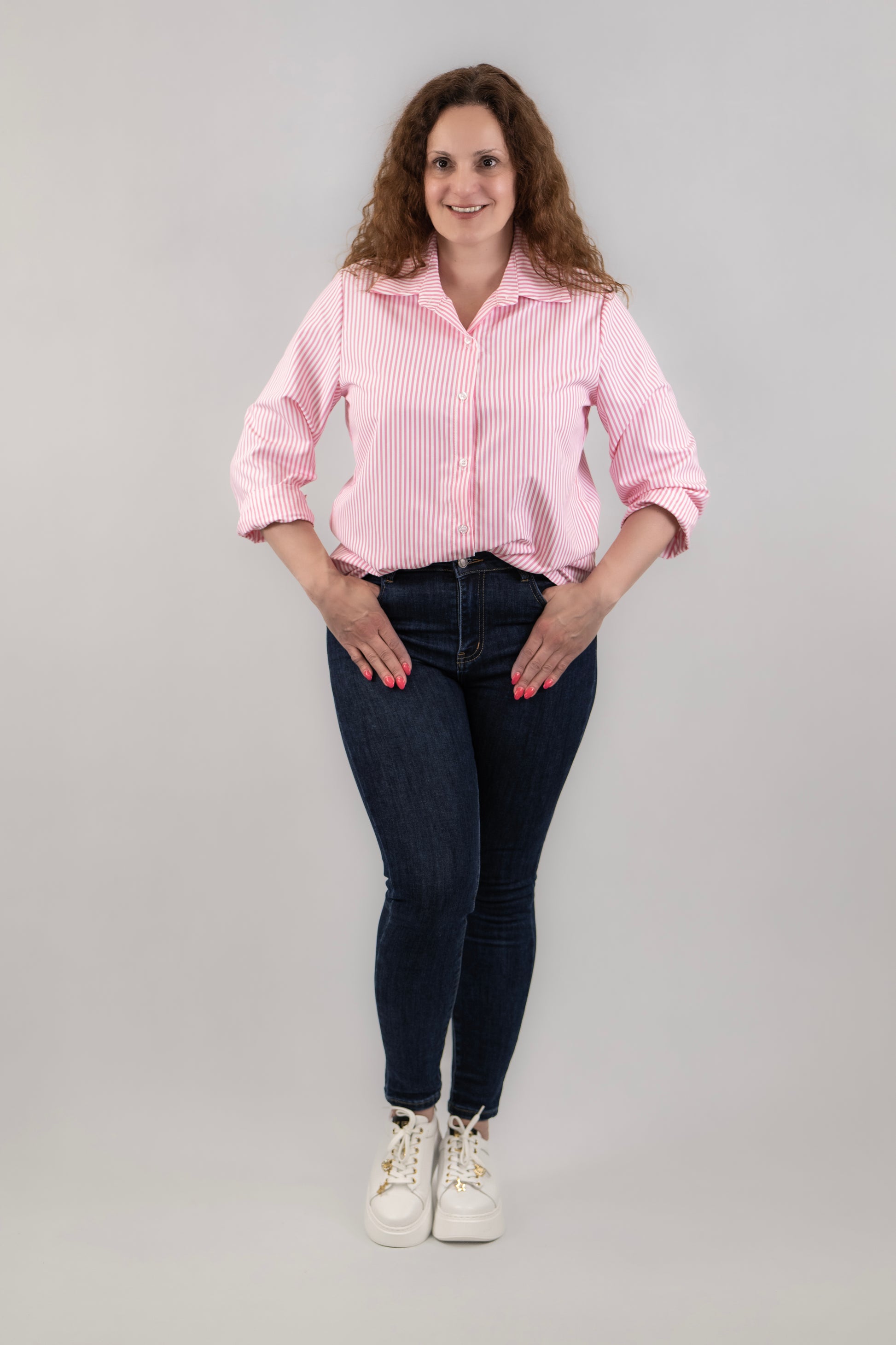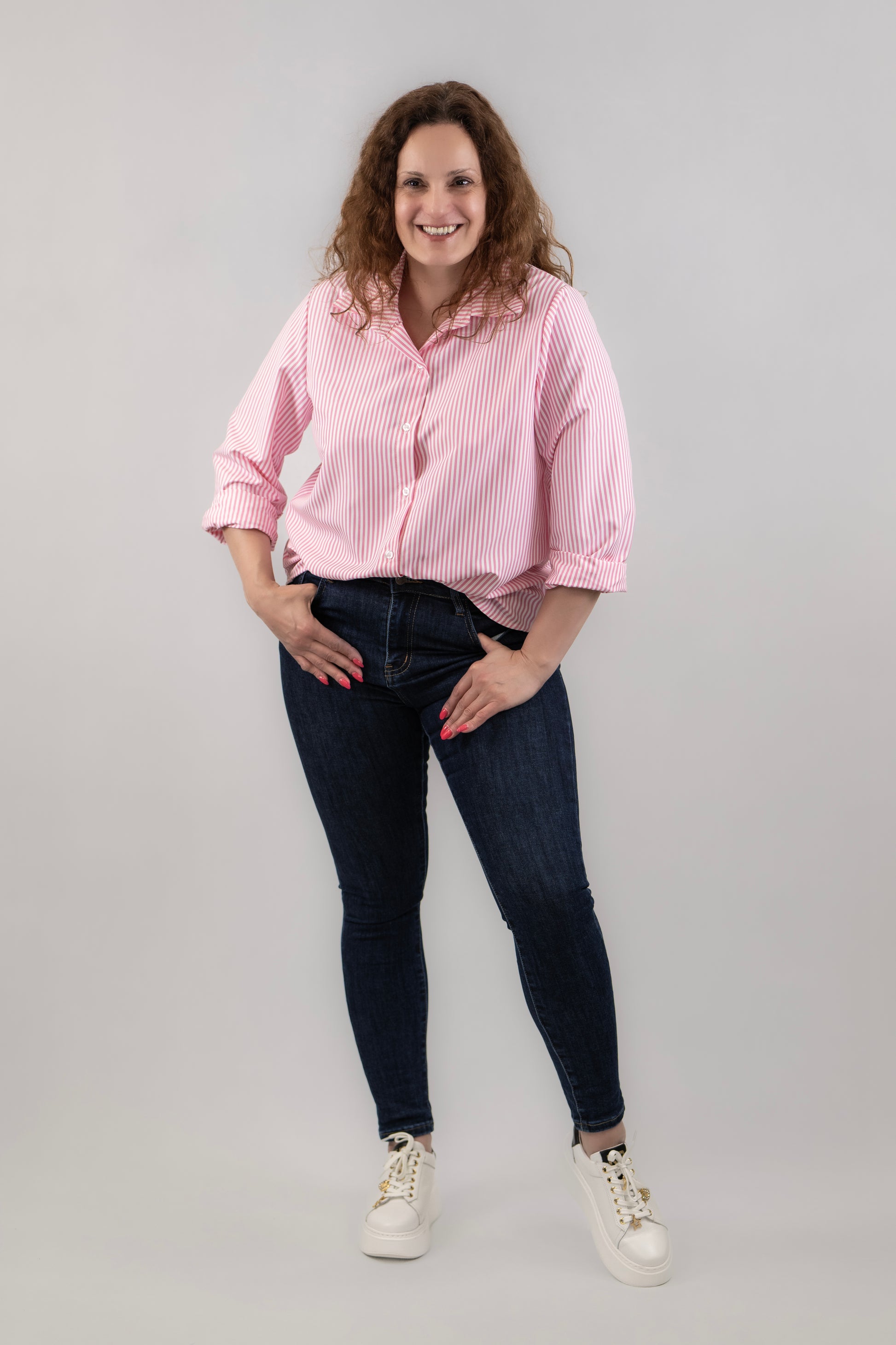 Maya Olasz rózsaszínű csíkos női ing. Könnyű kellemes viselet.