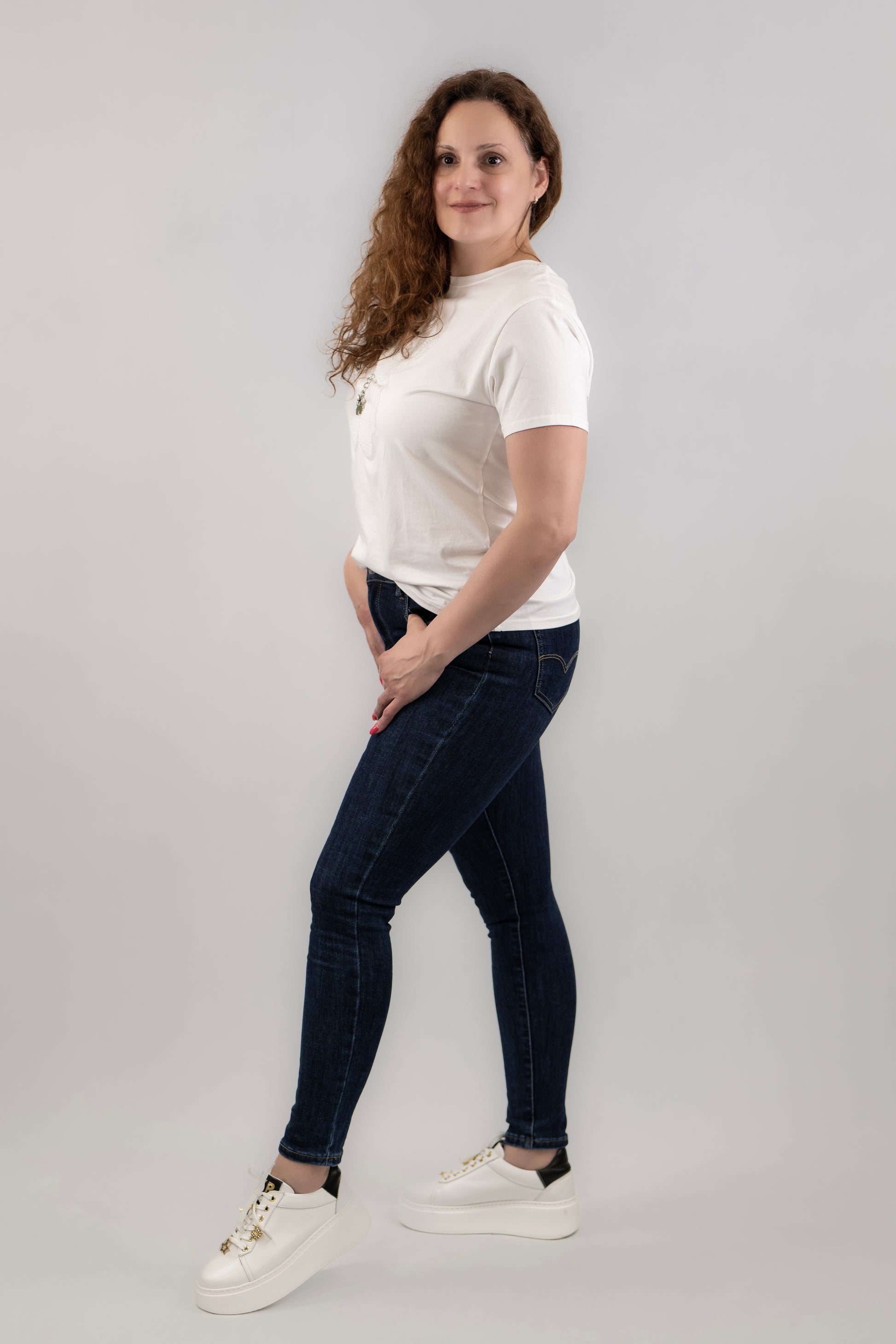 A fotón Anett szerepel 166 cm magas és 70 kg és S/M méretű pólót visel.