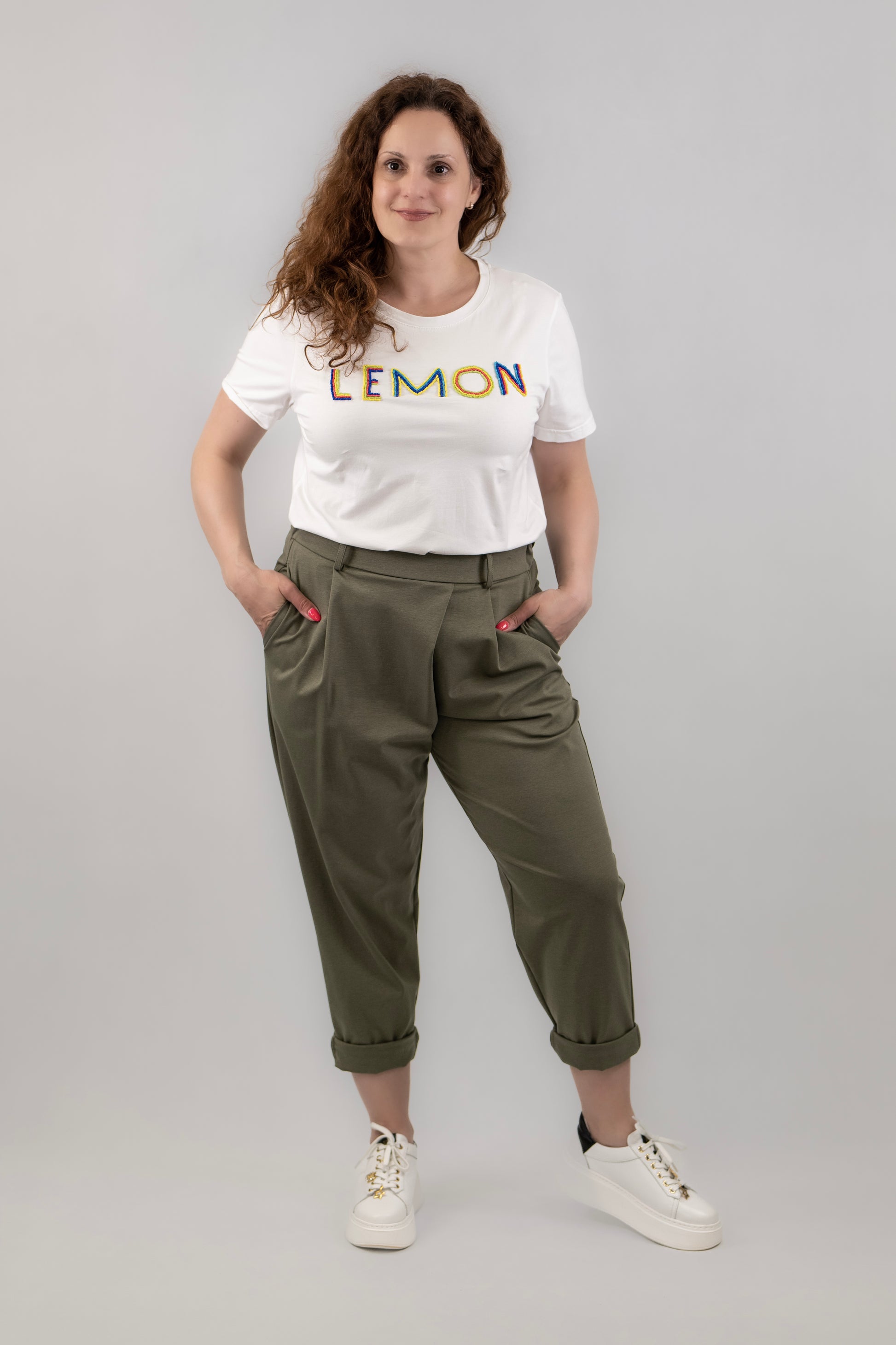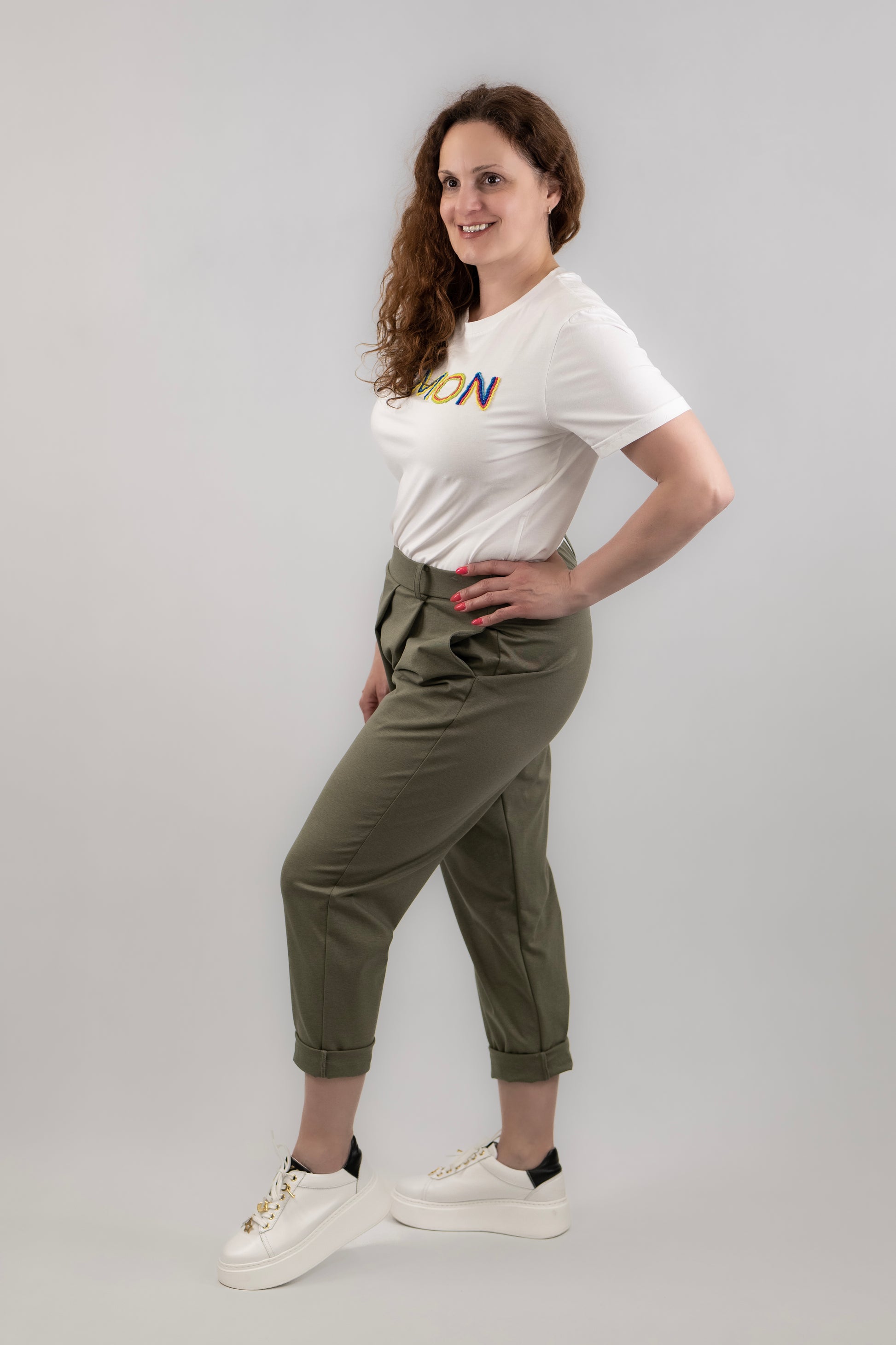 Olivazöld nadrág bő fazon, oldalt zsebekkel, gumis derékkal. Egyméretes L-XXL méretre ajánljuk.
