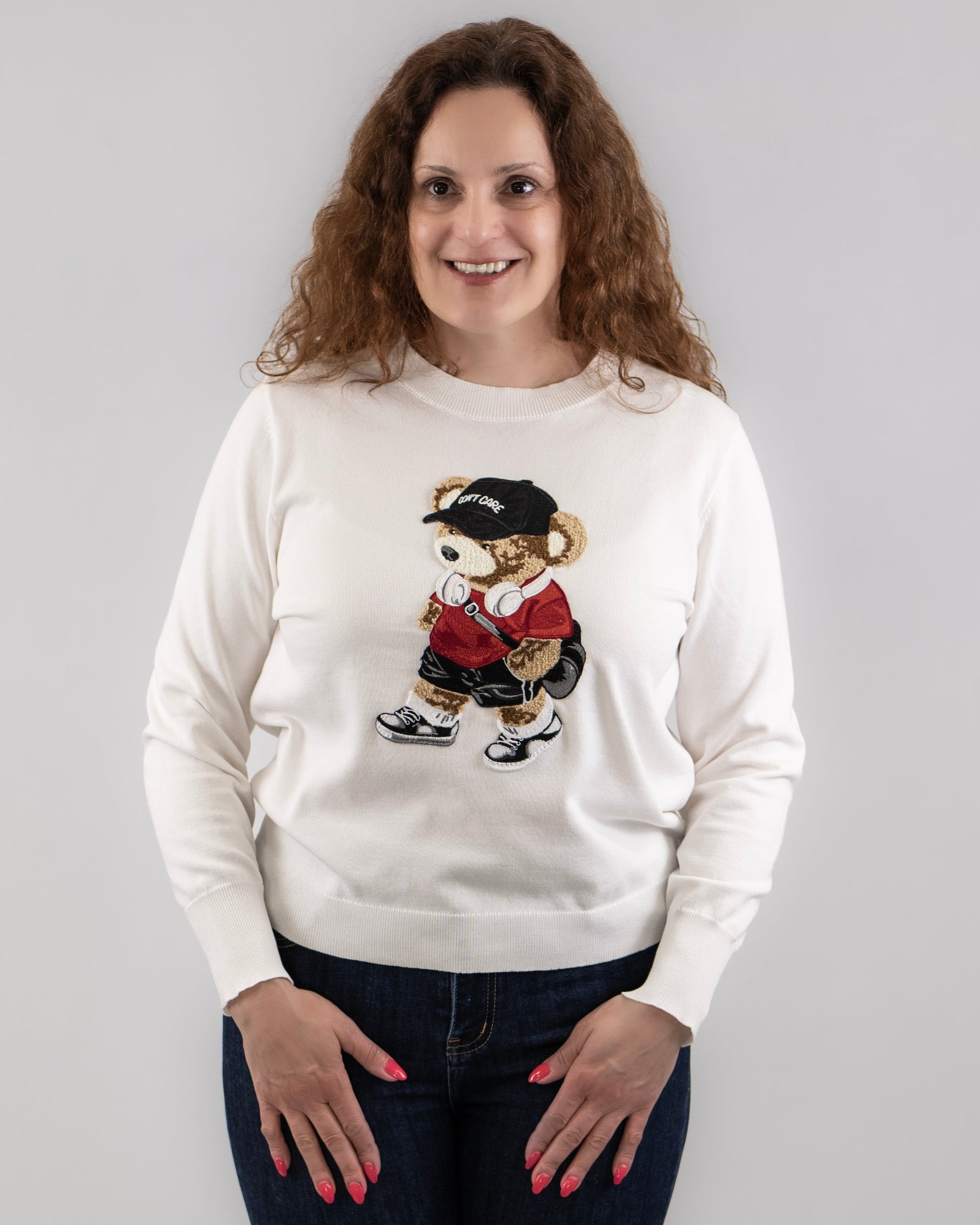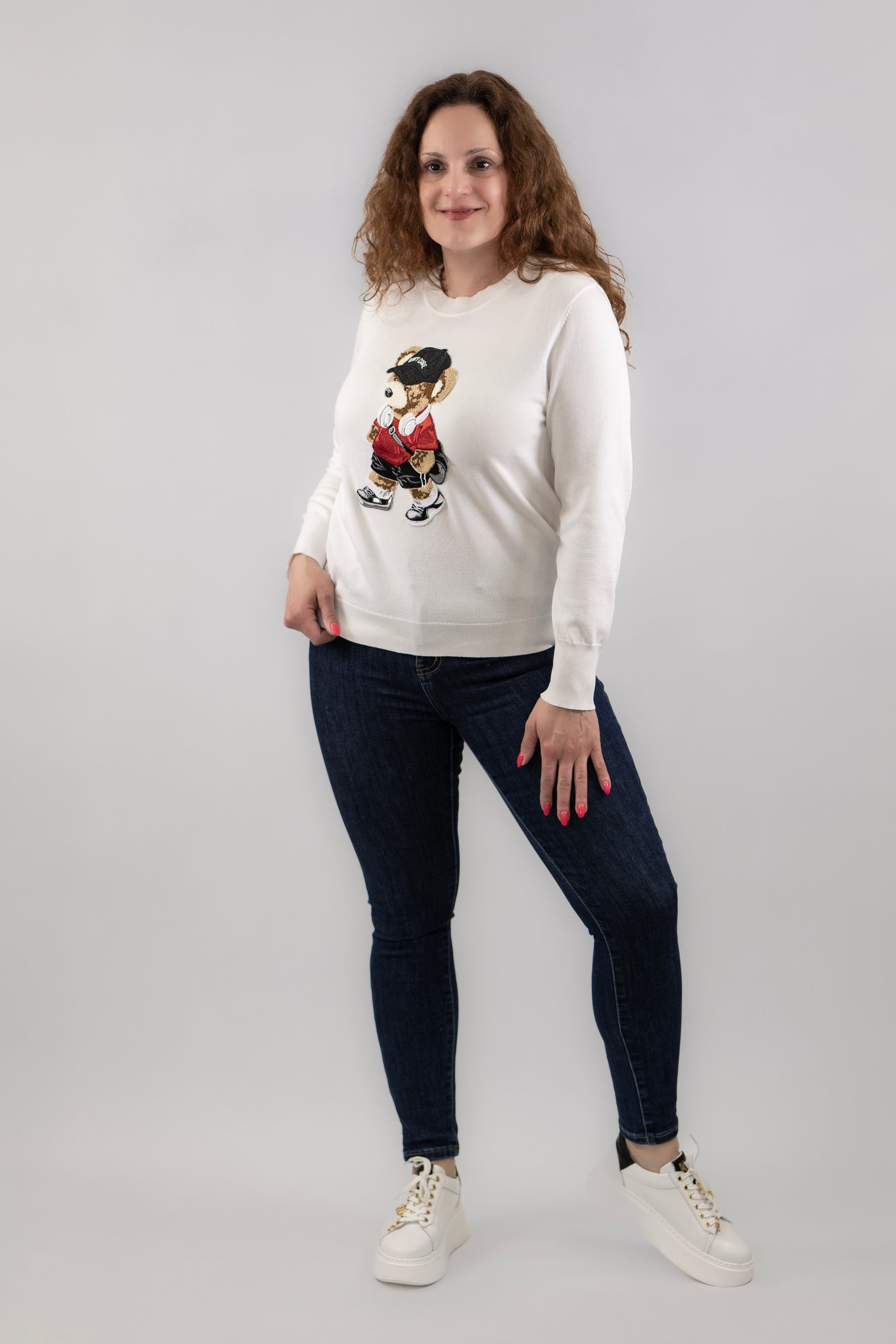 Finomkötött macis pulóver. Egyméretes S-L méretig ajánljuk.