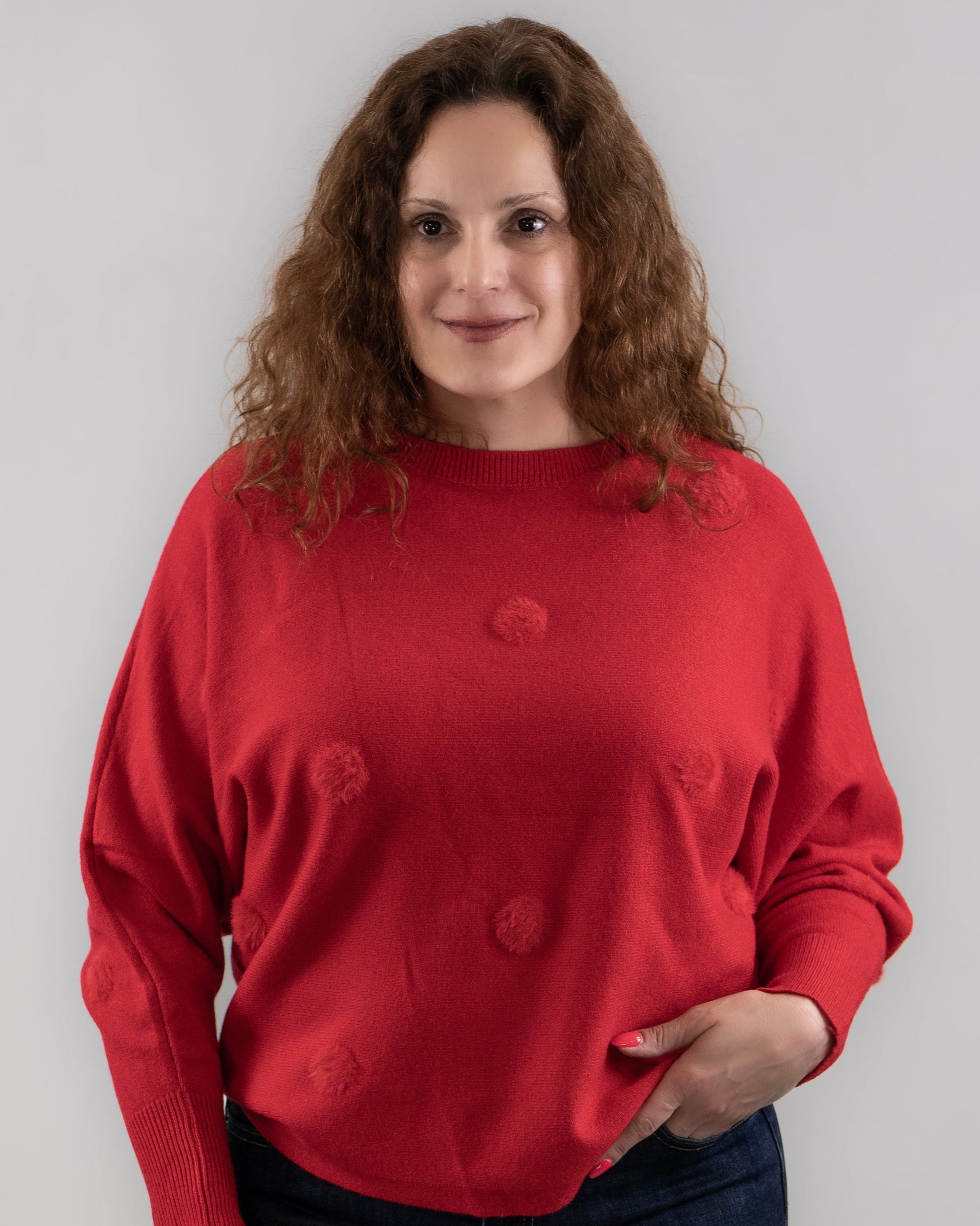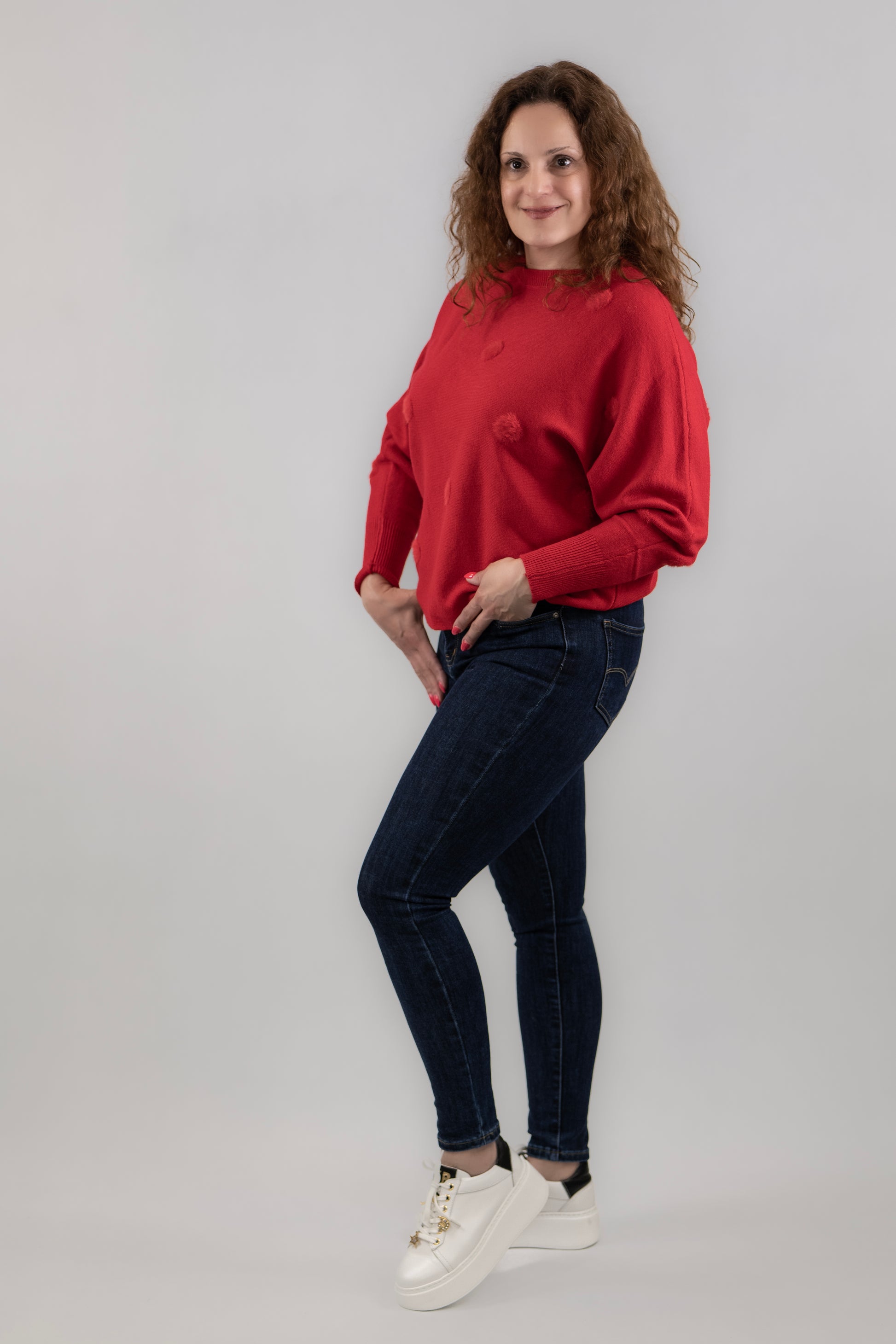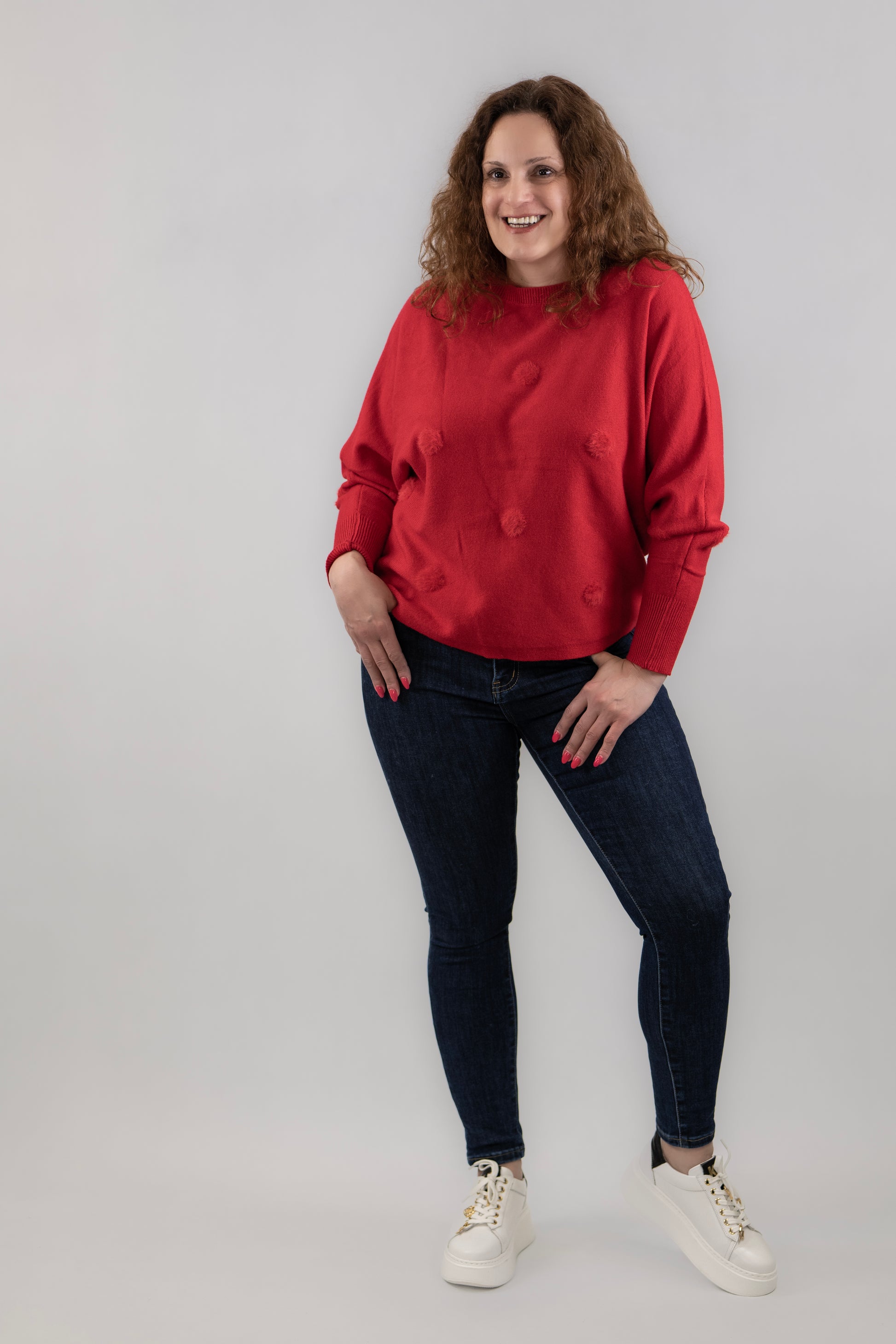 Puha finomkötött pulóver anyagában pöttyös. Egyméretes S-XL méretig ajánljuk.