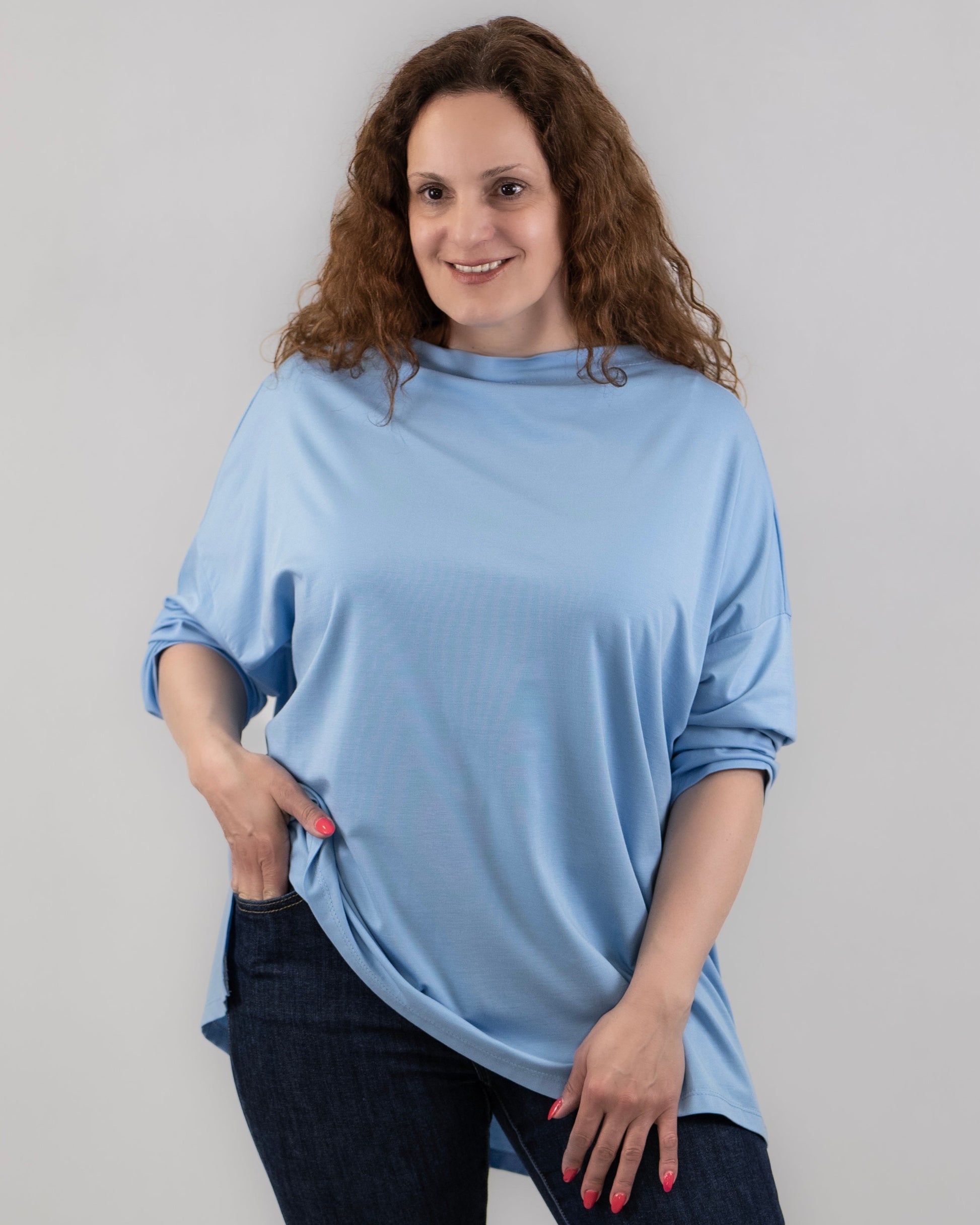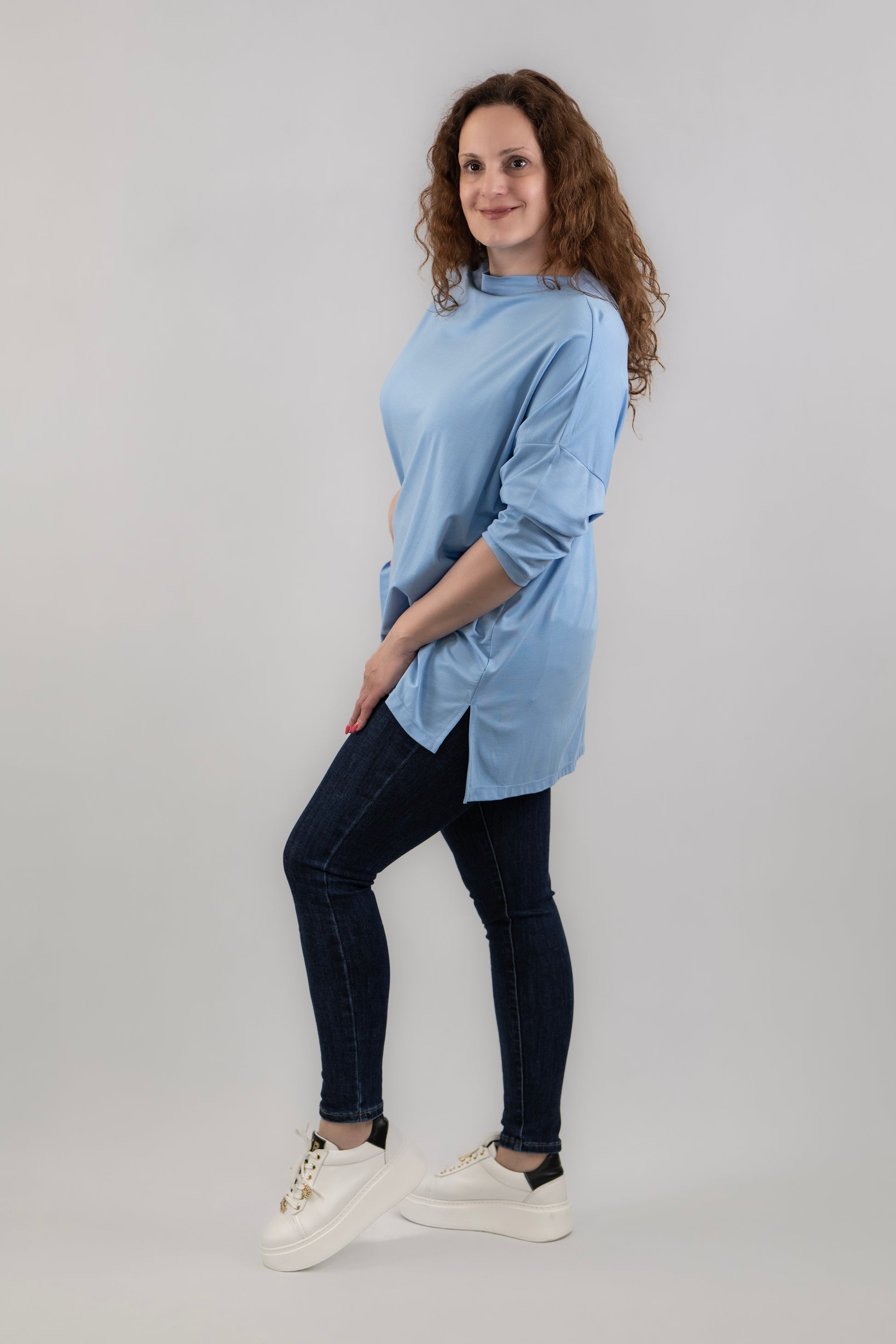 Világoskék hosszú ujjú pamut tunika nagy méret, nagyon kényelmes rugalmas anyagú.
